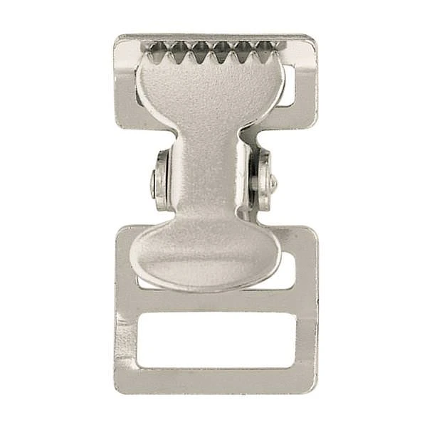 - Also known as a tourniquet buckle, this handy spring-loaded design features teeth for a secure grip on webbing