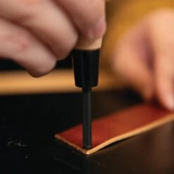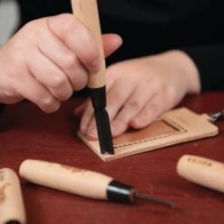 Give your leather crafting projects the perfect finishing touch with this corner knife made from special Yasuki Aogami #2 steel. Yasuki steel is known for its superior cutting and sharpening properties. This knife is designed to precisely cut and round the corners of your leather projects. With its extra sharp blade, there is no need for a hammer – just press the knife down on your leather for easy cutting.