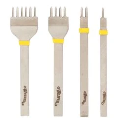 Punch holes for hand sewing and hand stitching leather with these leather stitching chisels. Designed with diamond point tips, this stitching chisel set makes quick work of punching holes so you’ll be on your way to stitching your project in no time. A must-have for any leathercrafter who frequently encounters hand sewing and saddle stitching tasks in their work, each tool is crafted from carbon steel for reliable punching performance.