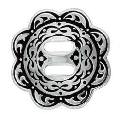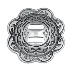 - Floral concho is available with slots that have no sharp edges and feature 1/8″ x 7/16″ slots