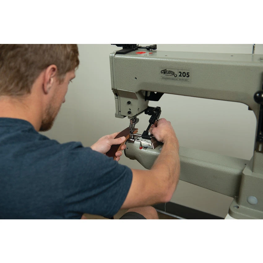 When you’re searching for an industrial sewing machine that sews a variety of materials with ease and precision, the Weaver Leather Supply 205 Sewing Machine delivers. Sewing up to 3/4″ thick leather, nylon webbing, coated webbing, rubber, synthetic materials, canvas and more, this thick material sewing machine is a versatile workhorse for makers with medium to heavy-duty sewing needs. This reliable sewing machine comes equipped with a Multi-Speed Reducer, allowing you to customize your stitching speed to accommodate your projects and work style. With a Deluxe Adjustable Stand and a quality Servo motor, this cylinder arm sewing machine makes a welcome addition to any shop.